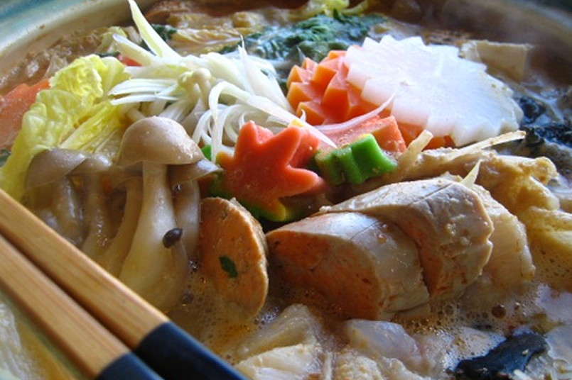 磯原シーサイドホテル伝承の肝味噌仕立てのスープにたっぷりのあんこうと旬の野菜を一緒に美味しく煮立てたあんこう鍋は、コラーゲンたっぷり。